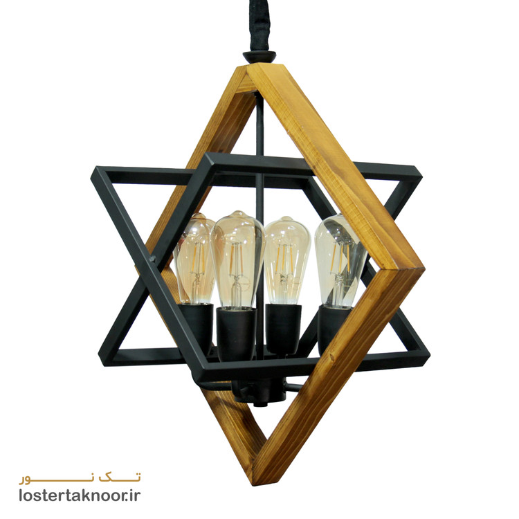 بدنه لوستر ترکیبی از جنس چوب و فلز است که زیبایی بینظیری به لوستر داده است .این لوستر دارای 4 شعله میباشد که سرپیچ قرار گرفته در آن سرپیچ معمولی e27 است بنابراین میتوانید به وسیله آن نور خوبی را داشته